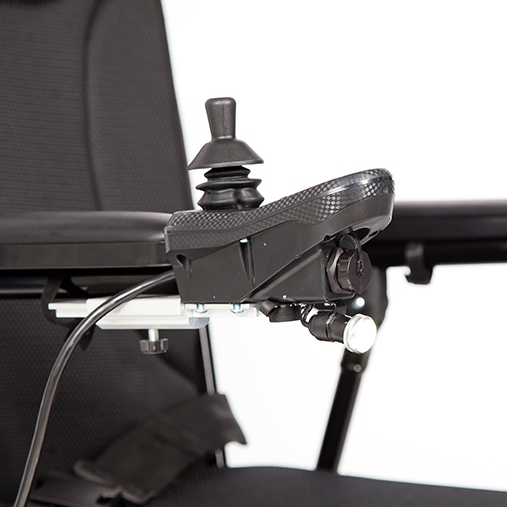 - Манипулятор коляски с электроприводом можно переставить под любую руку и при необходимости отрегулировать по длине.