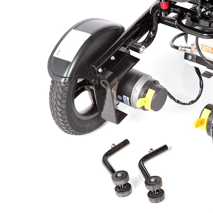 - Рама коляски с электроприводом и другие элементы изготовлены из прочного алюминиевого сплава с антикоррозийным покрытием.